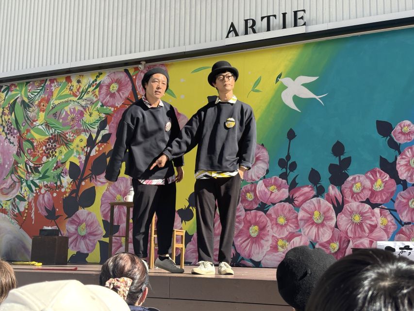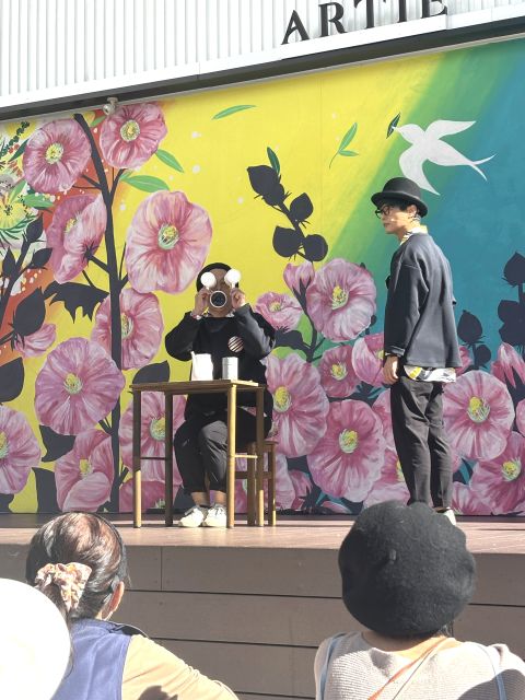 おそろいの黒いトレーナー&黒パンツ姿の男性2人組。ラフな格好なのにどこかかっこいい。彼らのパフォーマンスはほどよいヌケ感があって面白かっこいい。