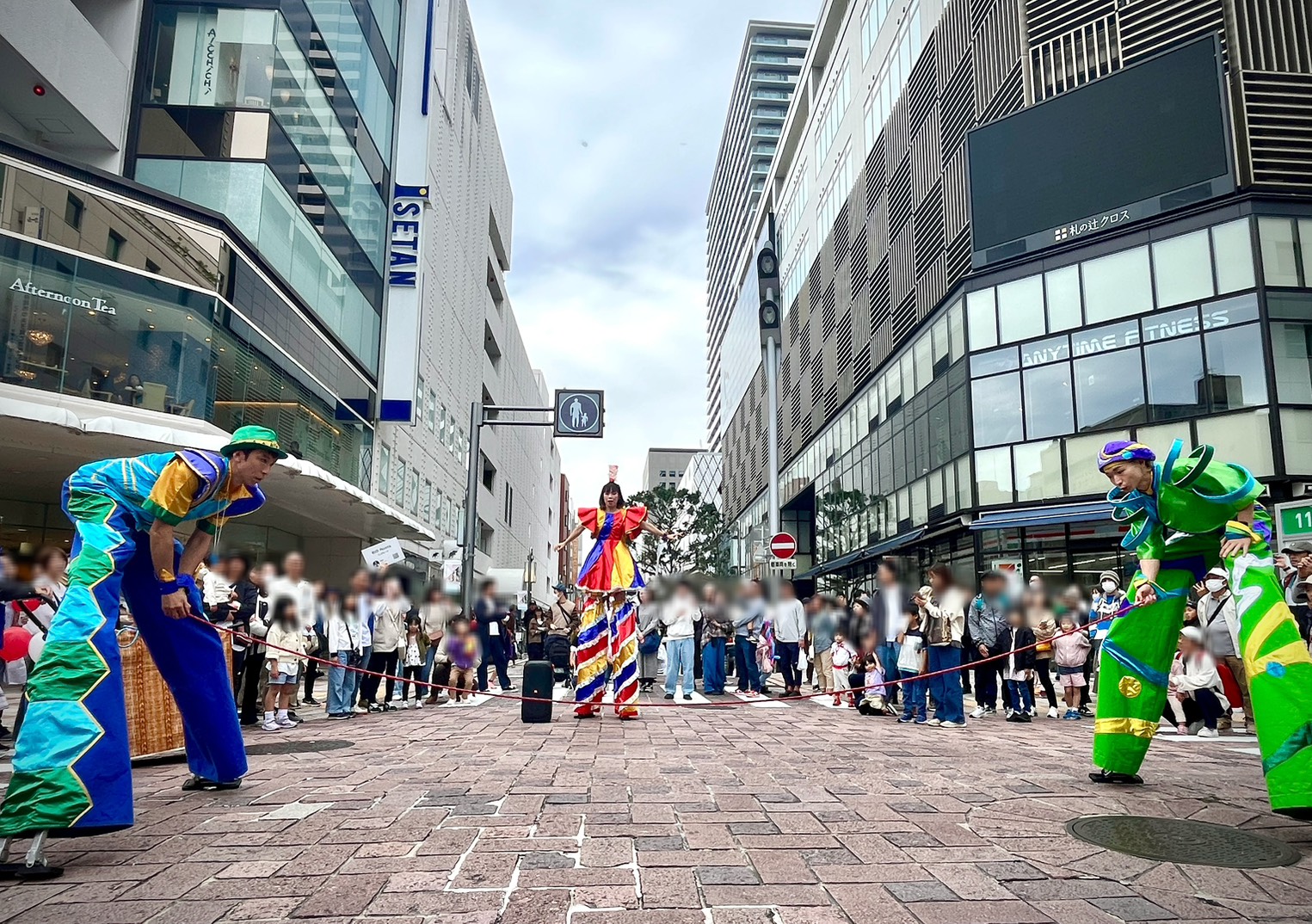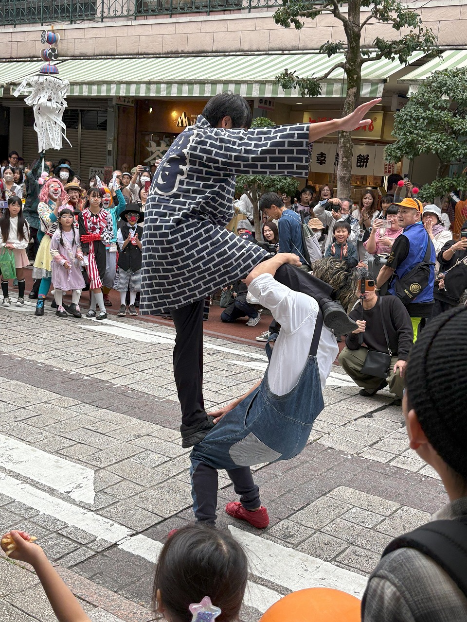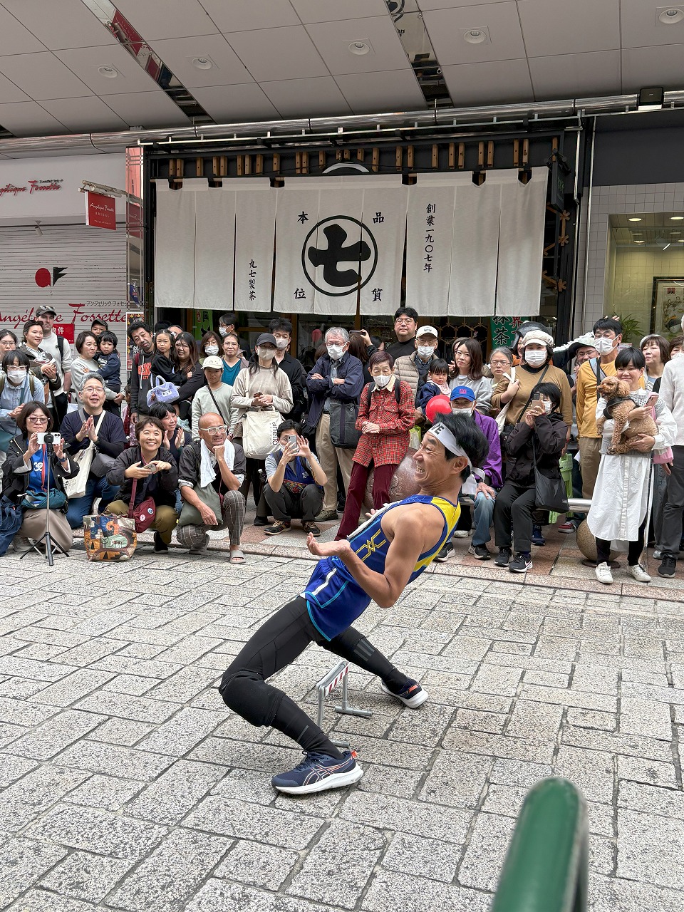 いつも接客している店長さんがパフォーマーと一緒に大道芸しちゃってる!